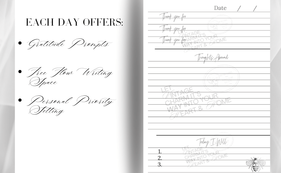 After your free write, move to the final section: three lines for your personal priorities for the day. Just three. They can be beautifully simple: "I will walk one block further than yesterday," "I will smile at a stranger," or even "I will not give my sister my opinion unless she asks, even though I know she's running into that fire head-on!"